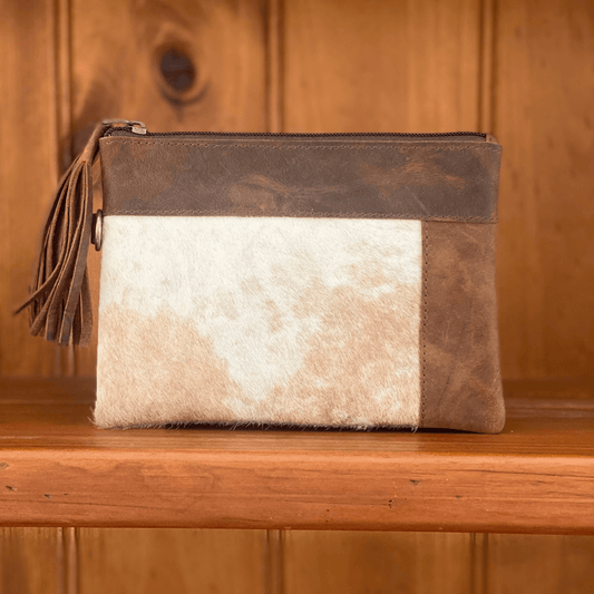 Ladies Large Leather Purse – Cowhide Clutch Wallet with Strap
