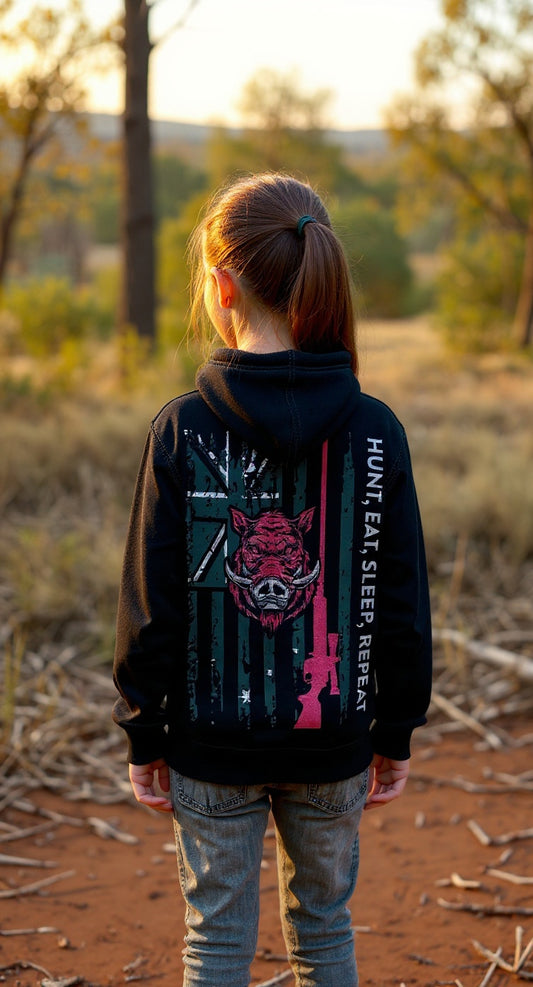 HUNT, EAT, SLEEP, REPEAT Kids Black Pullover