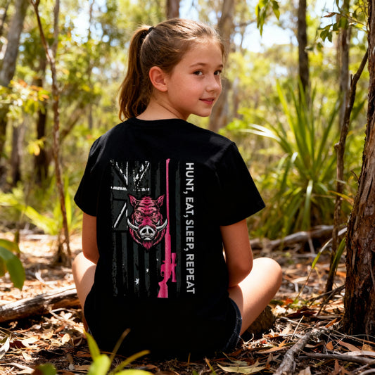 Kids Hunt, Eat, Sleep, Repeat Tee – Adventure Graphic Shirt by AWTB Apparel