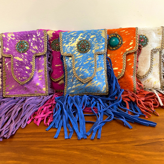 Mini Tassel Bag – Genuine Leather Crossbody with Gemstone Accent